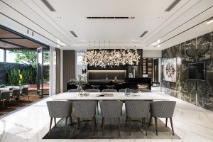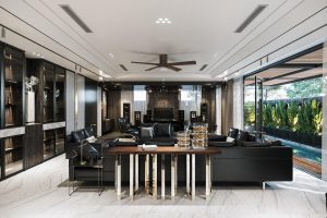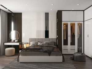Vẻ đẹp hiện đại sang trọng của mẫu biệt thự trước hết được thể hiện qua việc bố trí mặt bằng công năng với những hình khối vuông chữ nhật đơn giản được tính toán chồng xếp lên nhau một cách hợp lý đem đến nét đẹp khỏe khoắn và vững chãi cho mẫu biệt thự này.
