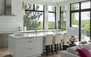 Điểm nổi bật trong thiết kế là những ô cửa lớn có mặt ở hâ hết không gian đê không khí mát lành của núi đồi được thổi vào từng góc căn hộ.