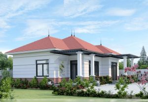 Kiến trúc mái nhật có tính thẩm mĩ cao, không gian sân vườn hiện đại, với cảnh quan thiên nhiên, tường rào bao quanh, giúp cho công trình thu hút hiệu ứng thẩm mĩ cao nhất. Kiến trúc sư đã khôn khéo khi kết hợp những hệ thống trụ cột vuông, phân bố đồng đều khắp các mặt tiền và hiên nhà. Kiến trúc mái nhật ấn tượng, cùng với hệ thống thanh lam chắn năng, gây điểm nhấn ấn tượng.