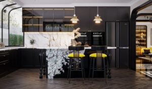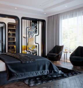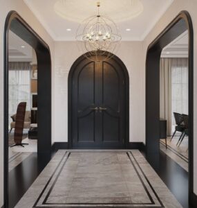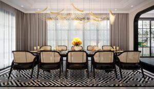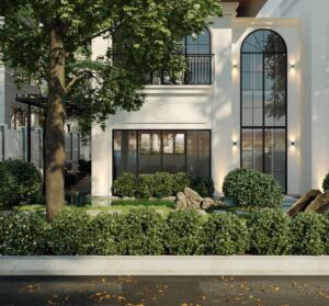 Nét truyền thống của Indochine hoà quyện với yếu tố thời thượng của Modern Classic một cách vô cùng tinh tế không chỉ giúp trang hoàng căn biệt thự mà còn thể hiện rõ đẳng cấp cũng như gu thẩm mỹ của gia chủ. Cửa mái vòm, chân đèn hình con tiện,…nhưng không phải đi với bàn ghế gỗ mà là bộ sofa cao cấp đáp ứng yêu cầu về thẩm mỹ độc – lạ của gia chủ.