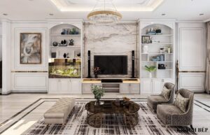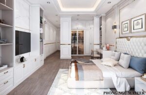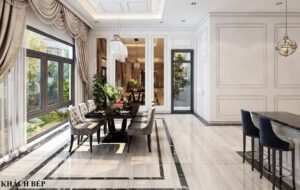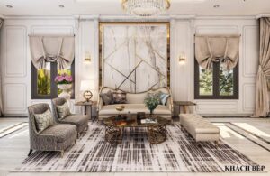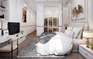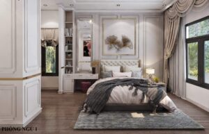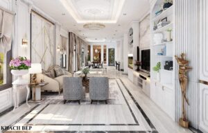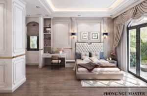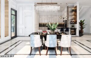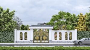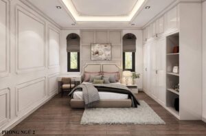 Nổi bật với tổng thể màu trắng nhẹ nhàng, lịch lãm và tinh tế. Kết hợp với toàn bộ hệ thống cửa sổ đều được làm bằng kính cường lực kết hợp nhôm xingfa trắng tạo nên vẻ đẹp kiều diễm, sang trọng. Thiết kế cửa kính thông thoáng, tận dụng tối đa ánh sáng tự nhiên vào phòng. Cửa chính lại được làm bằng gỗ tự nhiên mang màu nâu gỗ ấm áp, gần gũi và thân thuộc. Thiết kế cửa gỗ còn mang nhiều yếu tố phong thuỷ tốt lành tới gia chủ.