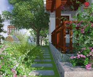 Thật thiếu xót nếu không thiết kế và bố trí cây xanh cho ngôi nhà. Bồn hoa được bố trí xung quanh mang đến không gian xanh hòa hợp với thiên nhiên. Bồn hoa được thiết kế với diện tích khá rộng nên gia chủ có thể tùy ý trồng những loại cây mà mình yêu thích. Nếu được đầu tư kỹ lưỡng chắc chắn đem lại vẻ đẹp hoàn hảo cho toàn bộ kiến trúc của căn nhà.