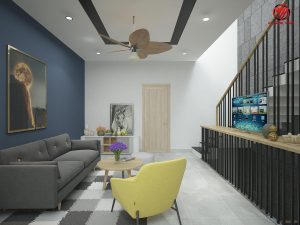 Công trình nhà phố 3 tầng nhà anh Phong mang phong cách hiện đại với kiến trúc vòm cong mềm mại tạo điểm nhấn, kết hợp với tông màu độc lạ dễ dàng gây ấn tượng cho người nhìn. Ngôi nhà với khoảng thông tầng và khoảng sân thượng rộng thoải mái tạo cho ngôi nhà như thêm không gian mở thông thoáng, không chút bí bách, như tiếp thêm năng lượng cho các thành viên trong gia đình.