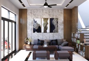 Thiết kế lấy màu sáng làm tone màu chủ đạo, cùng với sự điểm xuyết, các gam màu sẫm cá tính. Sự kết hợp rất có duyên đó tạo nên một tổng thể quyến rũ khiến cho căn nhà phố 3 tầng hiện đại. Ngay lập tức chinh phục mọi ánh nhìn của người đi đường.