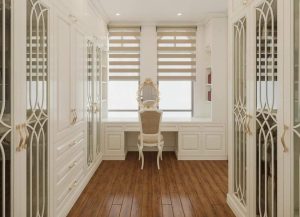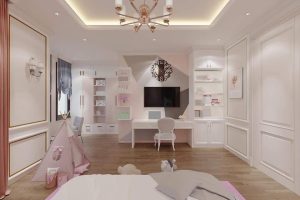 Thiết kế kết hợp hài hòa giữa 2 tone màu chủ đạo là trắng và nâu gỗ, vừa tạo cảm giác nhã nhặn, nống ấm, vừa làm nổi bật lên những đường nét thiết kế độc lạ đầy cuốn hút.