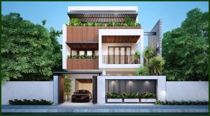 Thiết kế mẫu nhà 3 tầng là sự liên kết ấn tượng giữa những mảng khối giật cấp hài hòa với nhau biến ngôi nhà thành một thực thể đa chiều đầy chắc chắn.