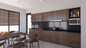 Tất cả các khu chức năng trong nhà đều thoáng với cửa thông ra bên ngoài trời đặc biệt là khu bếp luôn ngập tràn ánh sáng, Bếp luôn sáng sủa và sạch sẽ đảm bảo chất lượng tốt nhất cho bữa ăn của gia đình.