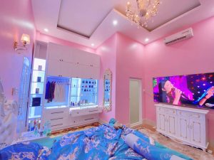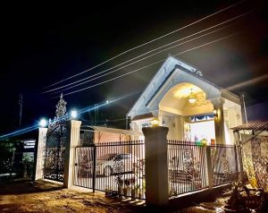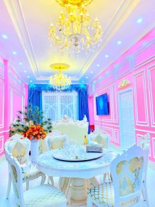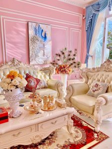 Ngôi nhà 1 tầng mái thái nổi bật lên hẳn bởi thiết kế tông màu cực cá tính và nội thất mang phong cách tân cổ điển đặc trưng từ phòng khách đến phòng ngủ. Thiết kế mặt tiền theo phong cách đơn giản hơn, nhấn nhá chút hoa văn tân cổ tao nhã. Nhưng chính kết hợp giữa thiết kế cổng và cửa nhà rộng rãi giúp người đi đường dễ dàng nhìn ngắm vào không gian phòng khách độc đáo đầy cuốn hút.
