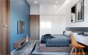 Ngôi nhà 2 tầng nổi bật với bố cục đơn giản, hút mắt. Là sự kết hợp hài hòa của các gam màu chủ đạo là trắng xanh và nâu ấm của gỗ. Sự khéo léo phối các gam màu mang đến một không gian sang trọng và hiện đại.