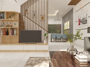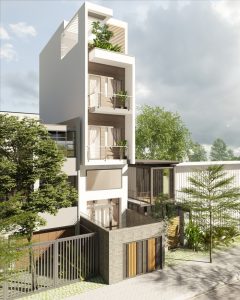 Thiết kế ngôi nhà với không gian tầng trệt và gác lửng dành hoàn toàn cho việc cho thuê. Gia đình gia chủ gồm 4 người sẽ sống từ tầng 2 trở lên. Với phương án bố trí một cầu thang bộ thông thẳng lên tầng 2 nhằm tạo sư riêng tư riêng cho các thành viên trong gia đình.