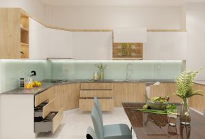 Bên ngoài ngôi nhà được ốp bằng các loại gạch thẻ tăng sự bền bỉ cho công trình trước tác động của thời tiết. Bên cạnh đó hệ thống cửa kính khung nhôm tăng sự truy cập của ánh sáng vào sâu mọi ngõ ngách bên trong ngôi nhà.