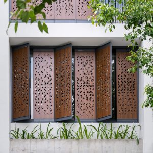 Mang đặc trưng của những căn nhà phố, hình thái kiến trúc căn nhà này khá năng động và hiện đại. Mặt tiền được thiết kế độc đáo với thiết kế bề ngoài có mái cong. Phần mái hiên rộng vươn ra giúp che nắng nóng nhưng vẫn để ánh sáng, gió mát thổi vào nhà. Đó còn là yếu tố tạo nên những cá tính thú vị mang đến góc nhìn riêng biệt so với các không gian nhà phố chung quanh.
