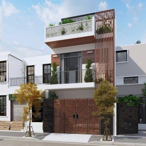 Mặt tiền mẫu nhà phố đẹp 3 tầng đã tận dụng hiệu quả điều đó qua việc bố trí cây xanh ở tầng trệt cũng như những ban công, sân thượng một cách khéo léo và độc đáo.