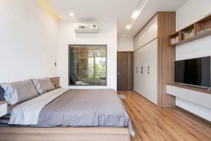 Thiết kế lệch tầng cũng giúp ánh sáng từ giếng trời sẽ được khuếch tán và lưu thông tốt hơn giúp ngôi nhà thoáng đãng và khác biệt so với những mẫu nhà phố truyền thống.