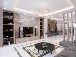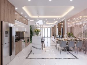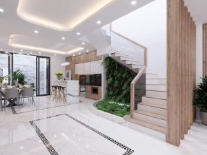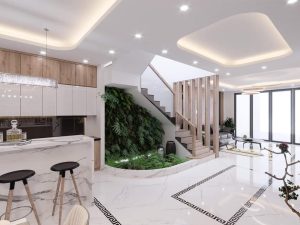 Phong cách nội thất chủ đạo là hiện đại, sang trọng & xanh. Các bạn có thể dễ dàng nhìn thấy các chi tiết nội thất, tất cả đều được thiết kế hiện đại và tinh tế. Màu sắc không quá sặc sỡ nhưng đủ để làm nổi bật các điểm nhấn cho căn nhà.