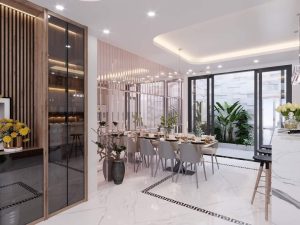 Gia chủ yêu thích các không gian mở nên tất cả các không gian trong nhà đều có Cửa hướng ra bên ngoài. Đảm bảo thông gió, thoáng khí và đủ ánh sáng.