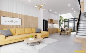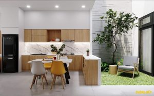 THOUSE nhà ống trên diện tích đất 100m2. Diện tích xây dựng 200m2. Điểm khác biệt của THouse là có ô thông tầng lớn ở tầng 1. Tạo ngăn cách giữa phòng bếp và phòng ngủ tầng 1. Chính kiểu bố trí công năng này làm cho phòng ngủ và Bếp luôn luôn có ánh sáng tự nhiên.