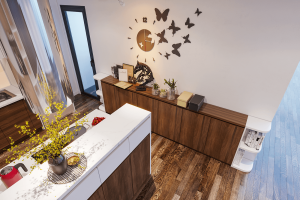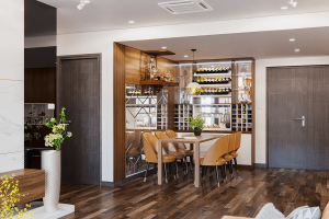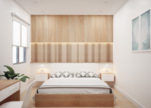 Lầu 2 với ban công, cửa kính tận dụng ánh sáng thiên nhiên và áp mái với những đường thẳng dóc ấn tượng với mái dốc đẹp hoàn hảo.
