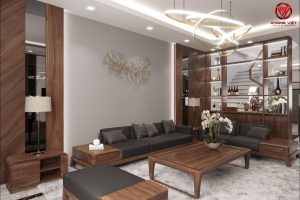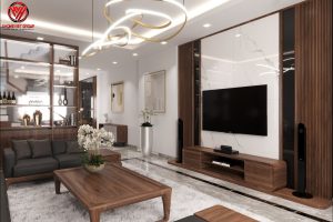 Căn hộ với nội thất chủ đạo gỗ óc chó là điểm nhấn cho cả không gia trở nên sang trọng, đẳng cấp hơn.