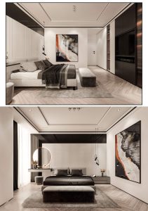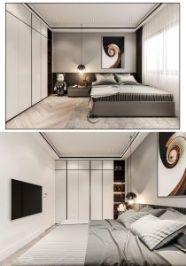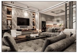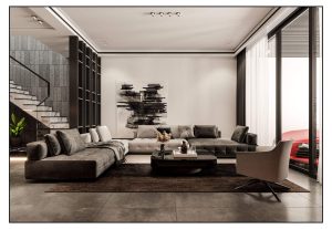 Ngôi nhà được Xhomeviet thiết kế nội thất sang trọng phù hợp với tài chính của chủ đầu tư. Khi có phối cảnh nội thất rất dễ hình dung không gian so với các bản vẽ mặt bằng chỉ cho ta thấy cách bố trí và kích thước. Màu sắc của ngôi nhà chủ yếu là màu xám cùng sắc trắng. Cùng với các họa tiết tự nhiên từ gạch lát sàn, vừa tránh cảm giác nhàm chán, vừa tạo nét trang trí tự nhiên mà không rối mắt.