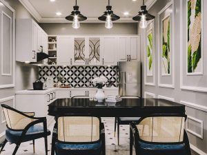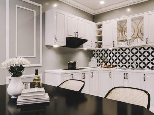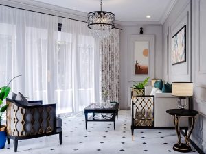 Nhà phố kiến trúc Tân cổ với những đường nét sang trọng, những đường phào nhẹ nhàng, tinh tế. Hoa văn nghệ thuật bắt mắt, được lắp ghép chỉn chủ ở những đường mạch chính, tạo thiện cảm và thể hiện điểm nhấn ấn tượng. Lan can hoa sắt uốn cong với họa tiết đẹp mắt, tính thẩm mĩ cao đem lại hình ảnh đẹp mắt, bác bỏ mọi nghi ngờ khi cho rằng nếu nhà phố xây dựng theo phong cách tân cổ thì sẽ trở nên cứng nhắc và khô cứng.