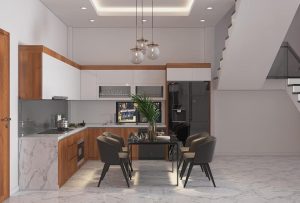 [✔️] Công trình là sự kết hợp giữa màu trắng, xanh và điểm xuyết màu nâu tối, màu gỗ tinh tế điển hình. Hứa hẹn sẽ mang đến nhiều thú vị và sự khác biệt nổi bật giữa hàng trăm nghìn ngôi nhà hiện nay.