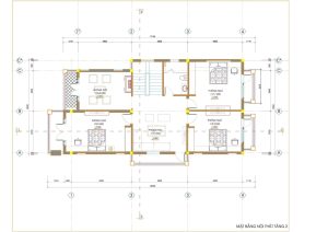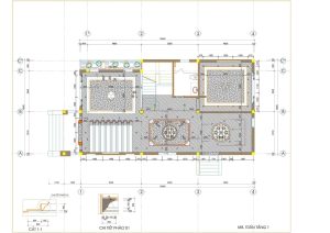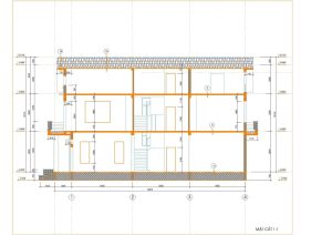 Phần mái được thiết kế độc đáo với 2 mảng mái lệch đỉnh. Mái dốc về 2 phía dọc theo chiều dài nhà. Mảng mái trông như 1 tấm thảm bay nhẹ nhàng, bay bổng . Mái lệch kiểu này thoát nước mưa và cách nhiệt rất tốt.
