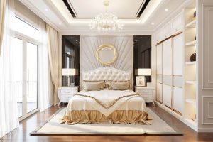 Ngôi nhà sang trọng với màu sơn tường trắng sáng. Với hệ thống lan can ban công sắt có họa tiết đơn giản, sử dụng hệ thống cửa nhôm xingfa kính cường lực vô cùng sang trọng. Vẻ đẹp mặt tiền nhà là yếu tố quan trọng giúp kiến trúc luôn có được sự nổi bật. Trong đó các chi tiết phào chỉ trang trí mang tính thẩm mỹ được trình bày tinh tế cực kì cuốn hút trên tông màu trắng tinh khôi.